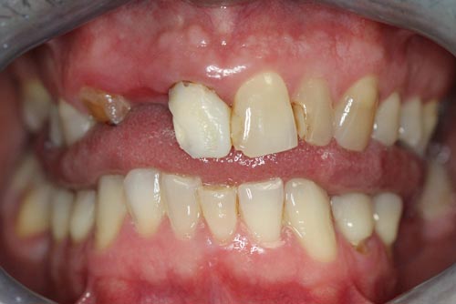 After a careful study of his whole mouth, Dr. Seifi found that Forrest had one missing tooth, one tooth broken off near the gum line, discolored cosmetic repairs and infected or decayed teeth. Most of his visible teeth were unsightly.